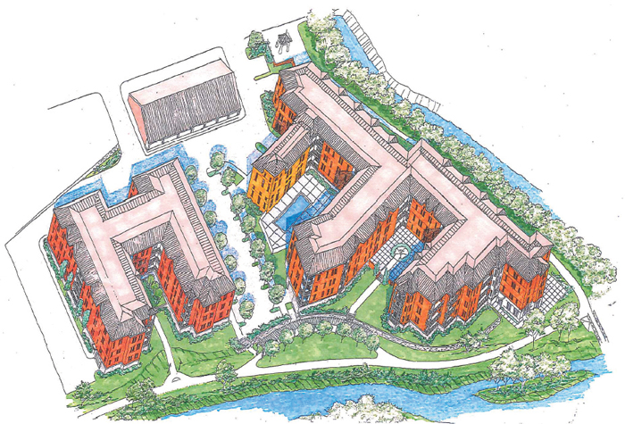 “Phase I will be the 206 apartments, and then Phase II will be the redevelopment of the retail / office portion that’s along Monroe Street,” said Arnos. “Ten Mile Creek and the branch of Ten Mile Creek are on the south and on the east side of the property that are attractive in and of themselves. The City has constructed Harroun Park, which is immediately adjacent to the property to the south and to the east, so anybody who would be living in these apartments would be able to avail themselves of that park, which is really a delightful park.